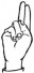 На ћирилици написано БУДИМИР ПЕРЧЕВИЋ састоји се из 15 слова [?]. Исписано ћириличном једноручном азбуком за глувонеме: